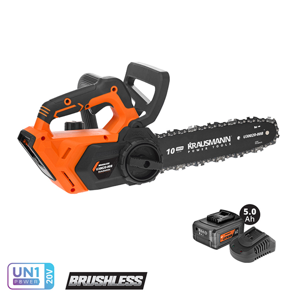 Δυνατό αλυσοπρίονο, εύκολο στη χρήση καθώς είναι ελαφρύ και διαθέτει εργονομική αντιολισθητική λαβή για μεγαλύτερη άνεση στη χρήση. Είναι κατάλληλο για τις πιο απαιτητικές εργασίες κοπής, όπως κλάδεμα και κοπή ξύλων. Η λάμα 25cm εξασφαλίζει πρόσβαση κοπής και στα πιο πυκνά σημεία και ο μηχανισμός ασφαλείας φρένου αλυσίδας σταματά την αλυσίδα σε λιγότερο από 1 δευτερόλεπτο. Διαθέτει ενσωματωμένο άγκιστρο για ασφαλή αποθήκευση, δείκτη στάθμης λαδιού αλυσίδας και το τέντωμα / αλλαγή αλυσίδας μπορεί να γίνει χωρίς εργαλεία. Τα χαμηλά επίπεδα θορύβου σας επιτρέπουν να εργάζεστε σε κατοικημένες περιοχές ή δάση χωρίς ηχορύπανση και καυσαέρια. Προτείνεται με 4.0Ah – 5.0Ah μπαταρία για μεγαλύτερη διάρκεια εργασίας.