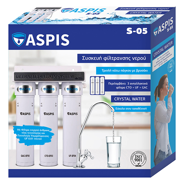 - Συσκευή φίλτρανσης νερού τριπλή , για τοποθέτηση κάτω από τον πάγκο με βρυσάκι