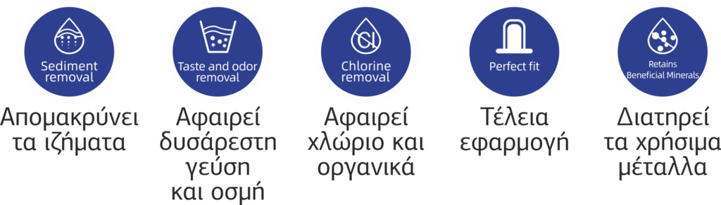 - Τεχνολογία φίλτρανσης 2 σταδίων με ενεργό άνθρακα φλοιού καρύδας εμποτισμένο με άργυρο για αντιβακτηριδιακή δράση