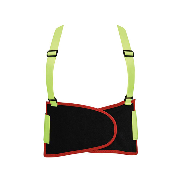Ελαφρύς, εύκαμπτος, ανακλαστικός ιμάντας κατά του φορτίου για εύκολη ανύψωση βαρέων αντικειμένων. Μειώνοντας την ένταση των μυών της πλάτης, ενισχύει και σταθεροποιεί την οσφυϊκή σπονδυλική στήλη. Μειώνει τον κίνδυνο τραυματισμών, π.χ. παρατεταμένους μεσοσπονδύλιους δίσκους και άλλους τραυματισμούς που σχετίζονται με τραυματισμούς μεταφοράς. Ζώνη με ρύθμιση μεγάλου μήκους, στερέωση velcro, επιπλέον στερεωμένη με τιράντες. Η ζώνη και οι ζαρτιέρες είναι κατασκευασμένες από ελαστικό ύφασμα σε έντονο κίτρινο χρώμα, ενώ επιπλέον υπάρχουν ειδικά ανακλαστικά στοιχεία. Η αυξημένη ορατότητα του φθαρμένου ιμάντα αυξάνει σημαντικά το επίπεδο ασφάλειας του χρήστη.