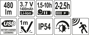 Πολύ ισχυρή και λειτουργική προβολέα Yato με συνεχώς ρυθμιζόμενη φως επάνω σε 480lm . Τέσσερις τρόποι λειτουργίας σάς επιτρέπουν να προσαρμόσετε τον φωτισμό στις δραστηριότητες και το επίπεδο φόρτισης της μπαταρίας. Ο ενσωματωμένος αισθητήρας κίνησης σάς επιτρέπει να ανάβετε και να σβήνετε τη λάμπα με ένα κούνημα του χεριού σας. Επιπλέον, ο προβολέας διαθέτει μια σειρά από ανέσεις – ρυθμιζόμενη γωνία φωτισμού, αποσπώμενο από τη ζώνη, μαγνητική βάση και ένδειξη φόρτισης μπαταρίας.
