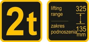 - υδραυλικός γρύλος. Ικανότητα φόρτωσης 2t. Εύρος ανύψωσης από 135mm έως 325mm.