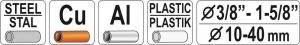 Κόφτης με σφιγκτήρα μαχαιριού. Για κοπή χαλύβδινων, χαλκού, αλουμινίου και πλαστικών σωλήνων από 10 έως 40 mm. Ο κόφτης είναι εξοπλισμένος με δύο περιστρεφόμενους κυλίνδρους πίεσης για καλύτερη καθοδήγηση των σωλήνων. Ένας κυκλικός κόπτης με κατάλληλα επιλεγμένο προφίλ είναι κατασκευασμένος από χαλύβδινο ρουλεμάν. Αυτό εξασφαλίζει πολύ μεγάλη διάρκεια ζωής του κόφτη και υψηλή ακρίβεια κοπής. Επιπλέον, η ρύθμιση πίεσης κοχλία επιτρέπει την ακριβή ρύθμιση της δύναμης κοπής.