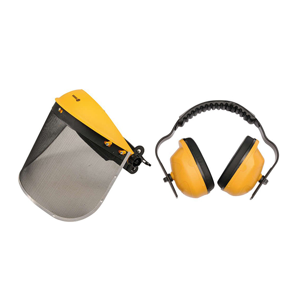 - Το προστατευτικό διχτυωτό κράνος προστατεύει τον χειριστή από μεγάλα θραύσματα λάφυρας από εργασίες όπως κούρεμα χόρτου, κοπή ξύλου με αλυσοπρίονο κ.λπ.