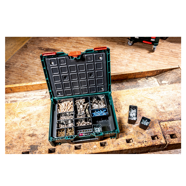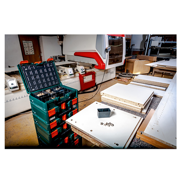 - Μέγιστη επισκόπηση χάρη στα δώδεκα κουτιά εισαγωγής Sortimo σε διαφορετικά μεγέθη που μπορούν να τοποθετηθούν ελεύθερα