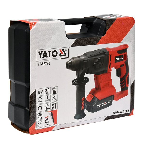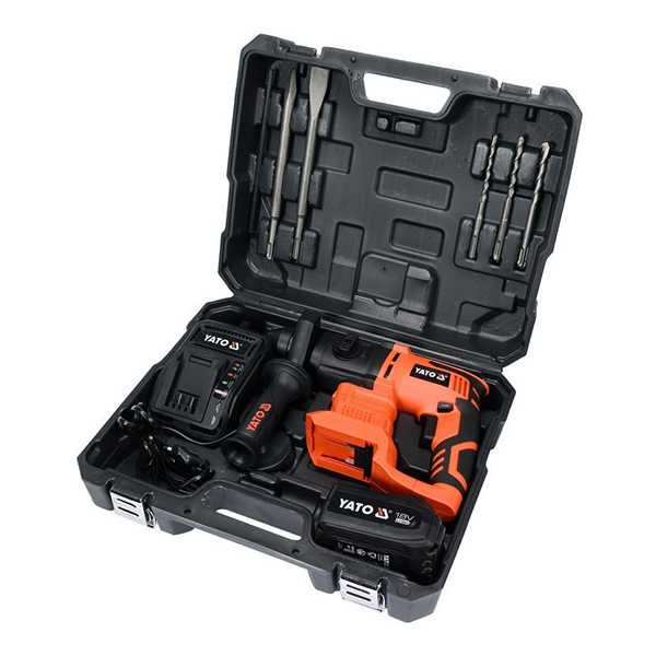 Ελαφρύ και εργονομικό ασύρματο σφυρί SDS-plus YATO με λειτουργία κοπής  .  Χάρη στο μικρό βάρος, το κοντό αμάξωμα και την τροφοδοσία από ανθεκτική μπαταρία, είναι ιδανικό για την εγκατάσταση αναρτημένων οροφών και τη σειριακή διάτρηση σε σκυρόδεμα. Συνιστάται για εγκαταστάτες και ηλεκτρολόγους.