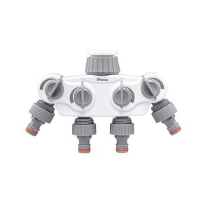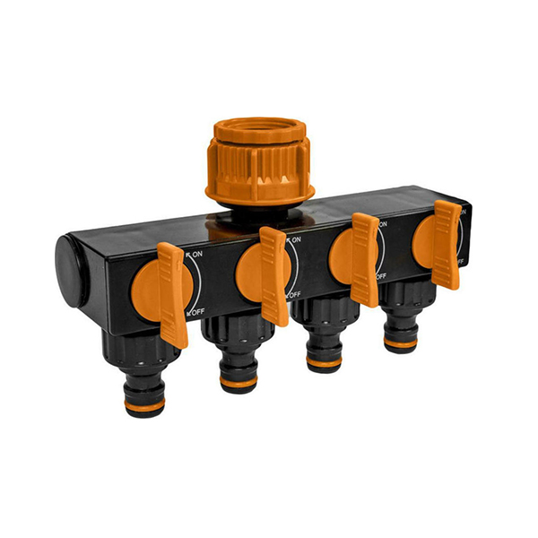 - Ρυθμιζόμενος διανομέας νερού 4 εξόδων με σύνδεσμο βρύσης για πότισμα με έως και τέσσερα λάστιχα ταυτόχρονα.