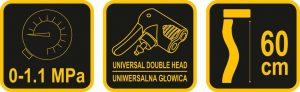 • Είναι εξοπλισμένο με καλώδιο μήκους 60 εκατοστών με καθολική άκρη για φούσκωμα τόσο των βαλβίδων ποδηλάτων όσο και των αυτοκινήτων