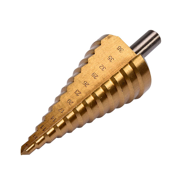 Τρυπάνι βηματισμού 6-38mm από YATO YT-44740. Κατασκευασμένο από χάλυβα υψηλής ταχύτητας HSS 4241, επικαλυμμένο με νιτρίδιο τιτανίου. 12 μοίρες σε διάμετρο: 6; 8; 11; 14; 17; είκοσι; 23; 26; 29; 32; 35; 38 χιλιοστά, κυλινδρική λαβή.