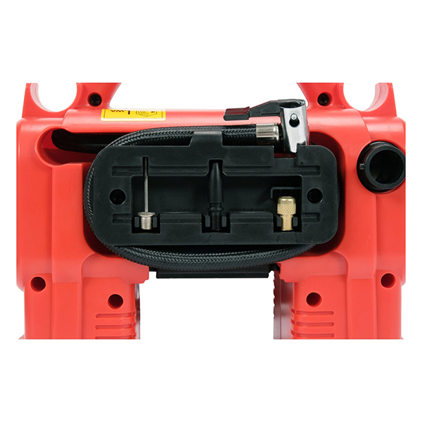 Πέντε εξαρτήματα (αυτοκίνητο, στενό ποδήλατο, βελόνα με μπάλα, στενό και φαρδύ για στρώματα) δίνουν ένα ευρύ φάσμα εφαρμογών για το συμπιεστή – στο δρόμο, στο κάμπινγκ, στο εργοτάξιο, στην εργασία στο πεδίο.